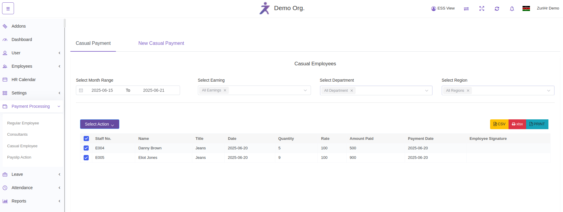 You will see a list of casual employees along with their calculated payments.