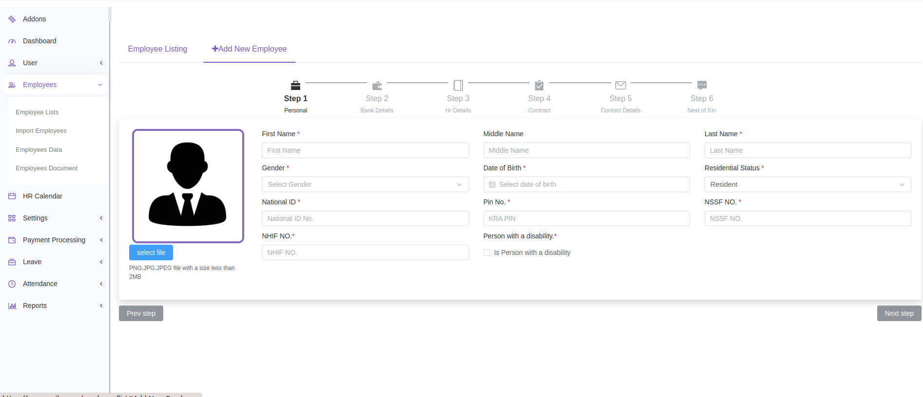 Click the Add New Employee tab.
